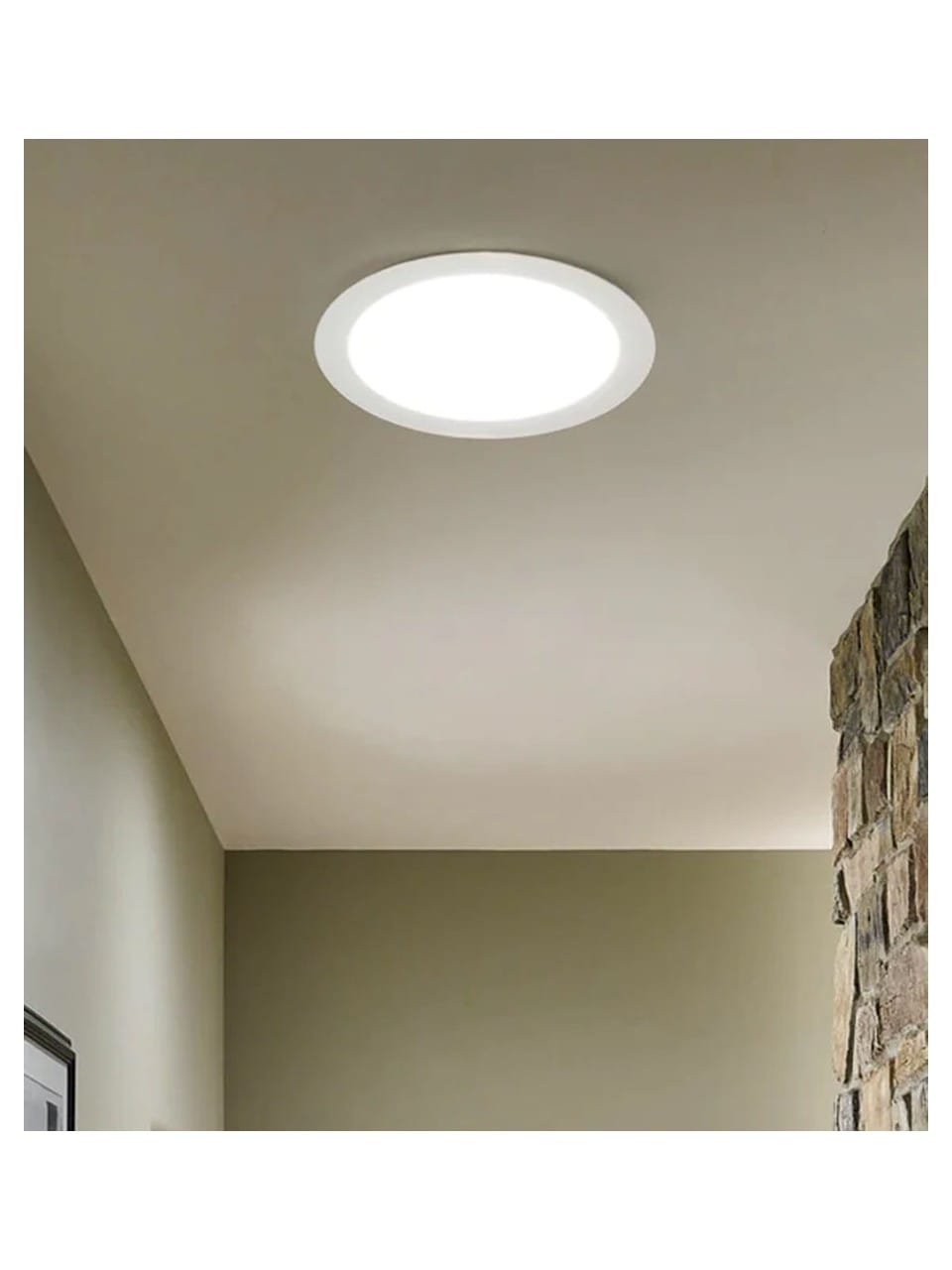 Alçıpanın altına monte edilen bu LED panel, yerden tasarruf ettirirken modern ve sade bir tasarıma sahiptir. Panelin yuvarlak şekli ve beyaz renk tonu, şık ve düzenli bir görünüm oluşturur, aynı zamanda farklı iç mekanlara uyum sağlar.